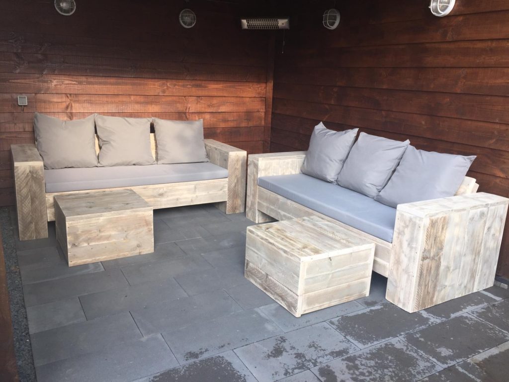 Loungeset model 6 2x Loungebanken 200 cm + 2x Loungestoel + 2x Hockers van €999,- nu voor maar €699,-